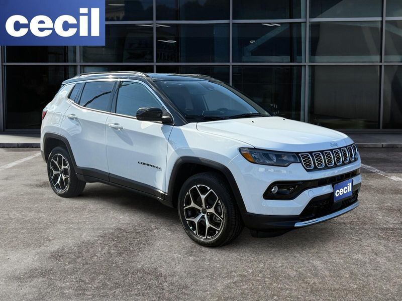 This 2026 Jeep Compass Limited is proudly offered by Cecil Atkission CDJR Burnet This Jeep includes: TU-TONE PAINT GROUP 225/55R18 BSW ALL SEASON TIRES Tires - Front Performance Tires - Rear Performance 8-SPEED AUTOMATIC 8F30 TRANSMISSION (STD) 8-Speed A/T Transmission w/Dual Shift Mode A/T BRIGHT WHITE CLEARCOAT 2.0L I4 DOHC DI TURBO ENGINE W/ESS (STD) 4 Cylinder Engine Gasoline Fuel Turbocharged *Note - For third party subscriptions or services, please contact the dealer for more information.* Want more room? Want more style? This Jeep Compass Limited is the vehicle for you. Stylish and fuel efficient. It's the perfect vehicle for keeping your fuel costs down and your driving enjoying up. Handle any terrain with ease thanks to this grippy 4WD. Whether you're on a slick pavement or exploring the back country, you'll be able to do it with confidence. Cecil Atkission Motors CDJR Chrysler Dodge Jeep Ram services all areas in the great state of Texas! Burnet, Bertram, Buchanan Dam, Tow, Bertram, Lampasas, Killeen, Liberty Hill, Leander, Round Rock, Lakeway, Llano, Kingsland, Sunrise Beach, Marble Falls, Horseshoe Bay, Granite Shoals, Cedar Park, George Town, Spicewood, Johnson City, Blanco, Bee Caves, Austin, San Antonio, Waco, Dallas, Fort Worth and more. We do offer free delivery within the state of Texas, ask us for more info!