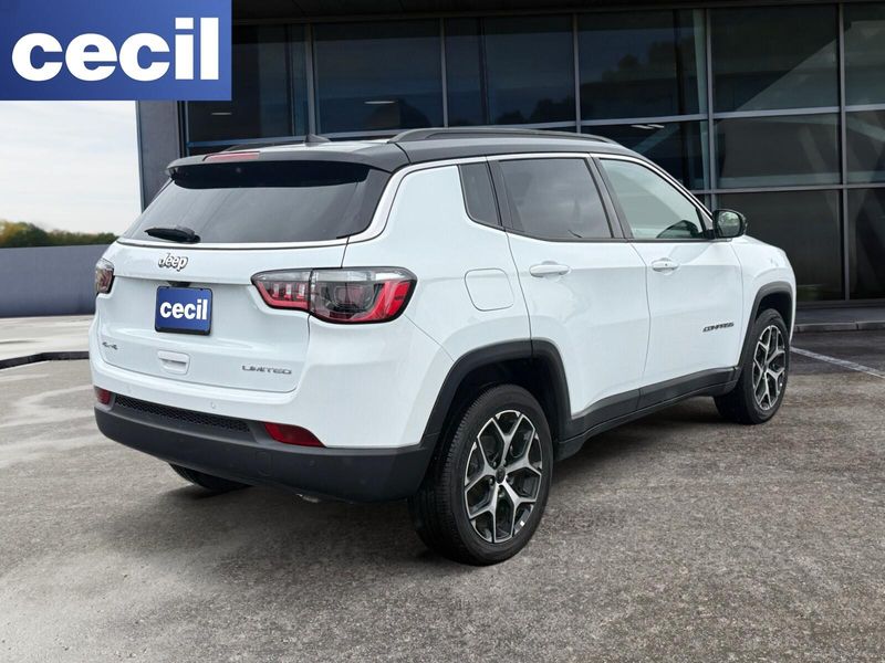 This 2026 Jeep Compass Limited is proudly offered by Cecil Atkission CDJR Burnet This Jeep includes: TU-TONE PAINT GROUP 225/55R18 BSW ALL SEASON TIRES Tires - Front Performance Tires - Rear Performance 8-SPEED AUTOMATIC 8F30 TRANSMISSION (STD) 8-Speed A/T Transmission w/Dual Shift Mode A/T BRIGHT WHITE CLEARCOAT 2.0L I4 DOHC DI TURBO ENGINE W/ESS (STD) 4 Cylinder Engine Gasoline Fuel Turbocharged *Note - For third party subscriptions or services, please contact the dealer for more information.* Want more room? Want more style? This Jeep Compass Limited is the vehicle for you. Stylish and fuel efficient. It's the perfect vehicle for keeping your fuel costs down and your driving enjoying up. Handle any terrain with ease thanks to this grippy 4WD. Whether you're on a slick pavement or exploring the back country, you'll be able to do it with confidence. Cecil Atkission Motors CDJR Chrysler Dodge Jeep Ram services all areas in the great state of Texas! Burnet, Bertram, Buchanan Dam, Tow, Bertram, Lampasas, Killeen, Liberty Hill, Leander, Round Rock, Lakeway, Llano, Kingsland, Sunrise Beach, Marble Falls, Horseshoe Bay, Granite Shoals, Cedar Park, George Town, Spicewood, Johnson City, Blanco, Bee Caves, Austin, San Antonio, Waco, Dallas, Fort Worth and more. We do offer free delivery within the state of Texas, ask us for more info!
