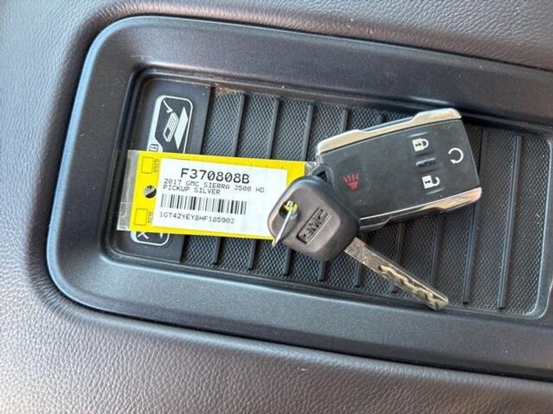Quicksilver Metallic 2017 GMC Sierra 3500HD Denali 4WD Allison 1000 6-Speed Automatic Duramax 6.6L V8 Turbodiesel Allison 1000 6-Speed Automatic, 4WD, Cocoa/Dark Sand Leather.