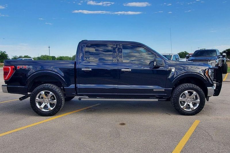 Blue 2021 Ford F-150 XLT 4WD 10-Speed Automatic 3.5L PowerBoost Full-Hybrid V6 3.5L PowerBoost Full-Hybrid V6, 4WD.