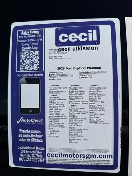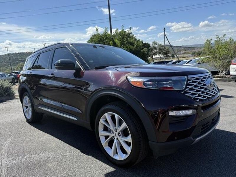 Jewel Red Metallic Tinted Clearcoat 2023 Ford Explorer Platinum 4WD 10-Speed Automatic 3.0L EcoBoost V6 1 OWNER, 4x4, Low Low Miles, 4WD, 3.31 Non-Limited-Slip Rear Axle Ratio, 3rd row seats: bench, Class IV Trailer Tow Package, Equipment Group 601A, Memory seat, Navigation System, Power driver seat, Power Liftgate, Twin Panel Moonroof.
