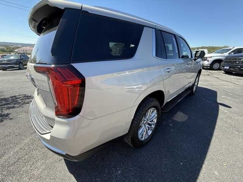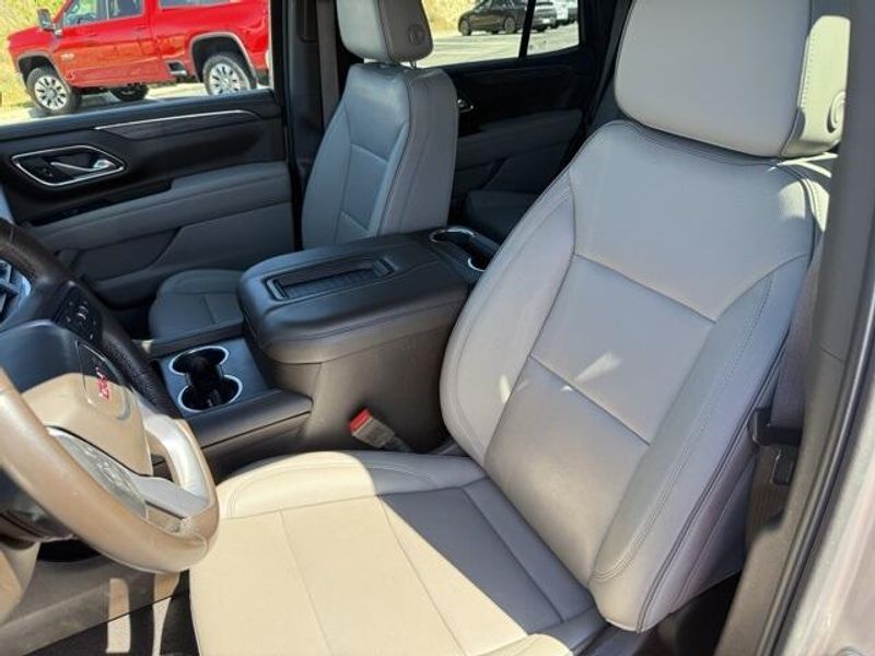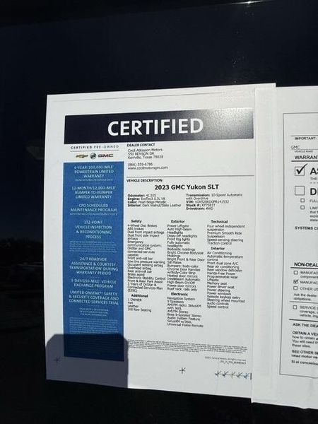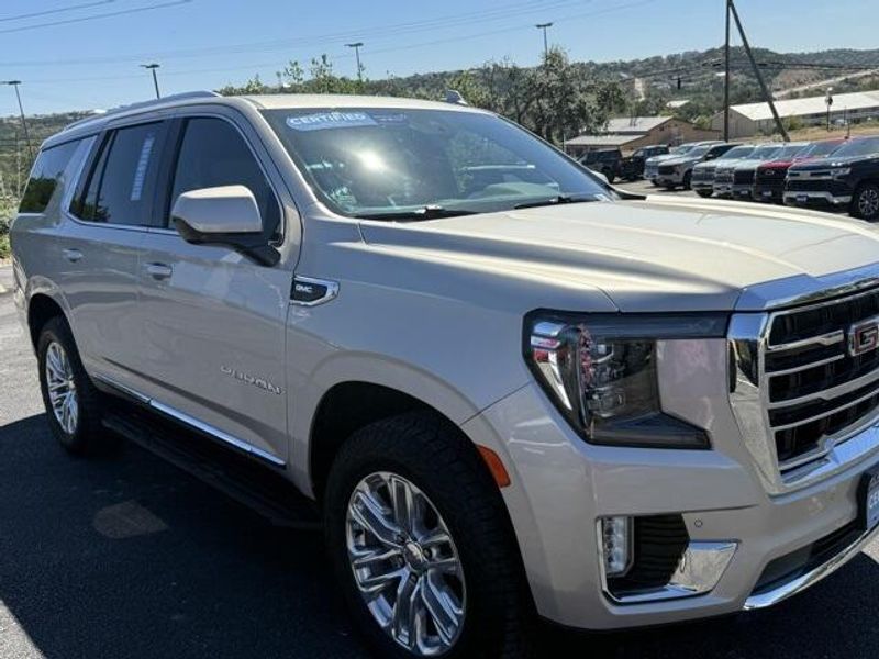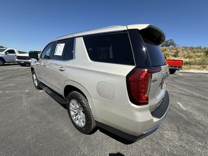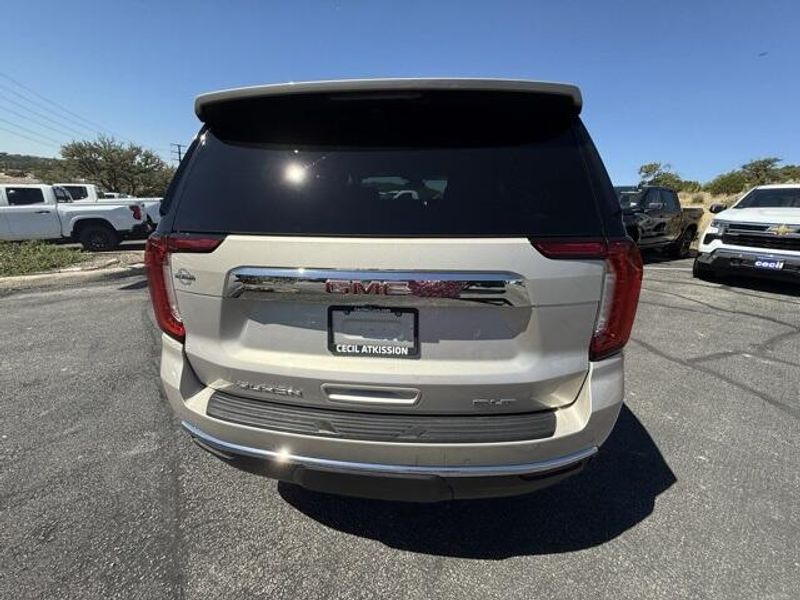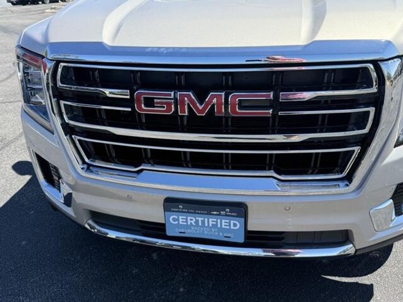 Pearl Beige Metallic 2023 GMC Yukon SLT 4WD 10-Speed Automatic with Overdrive EcoTec3 5.3L V8 1 OWNER, 4x4, Leather, 3rd Row Seating, 4WD, 2 Presets For Power Driver Seat, AM/FM radio: SiriusXM with 360L, Bose 9-Speaker Stereo Audio System Feature, Bright Chrome Bodyside Moldings, Bright Front & Rear Door Sill Plates, Chrome Door Handles w/Body-Color Strip, Hands-Free Power Programmable Rear Liftgate, Heated & Ventilated Driver & Front Passenger Seats, Heated Driver & Front Passenger Seats, Inside Rear-View Auto-Dimming Mirror, Navigation System, Power driver seat, Power steering, Preferred Equipment Group 4SA, Safety Alert Seat, Universal Home Remote, Wireless Charging.