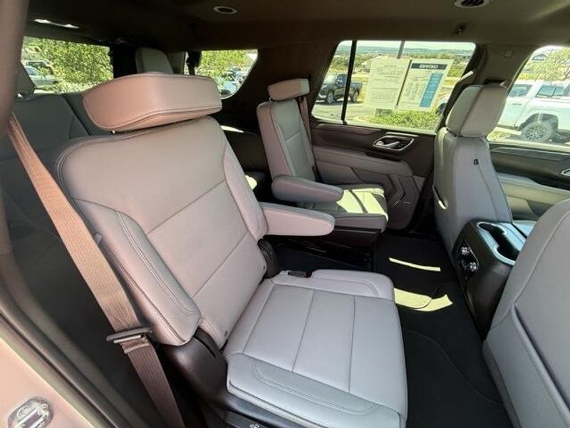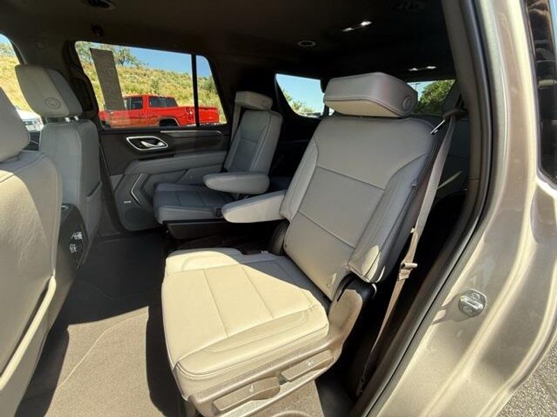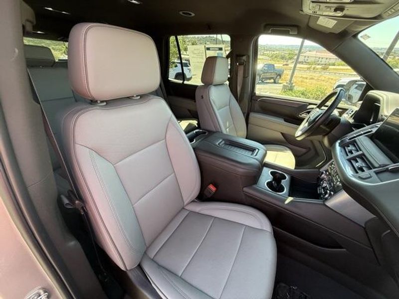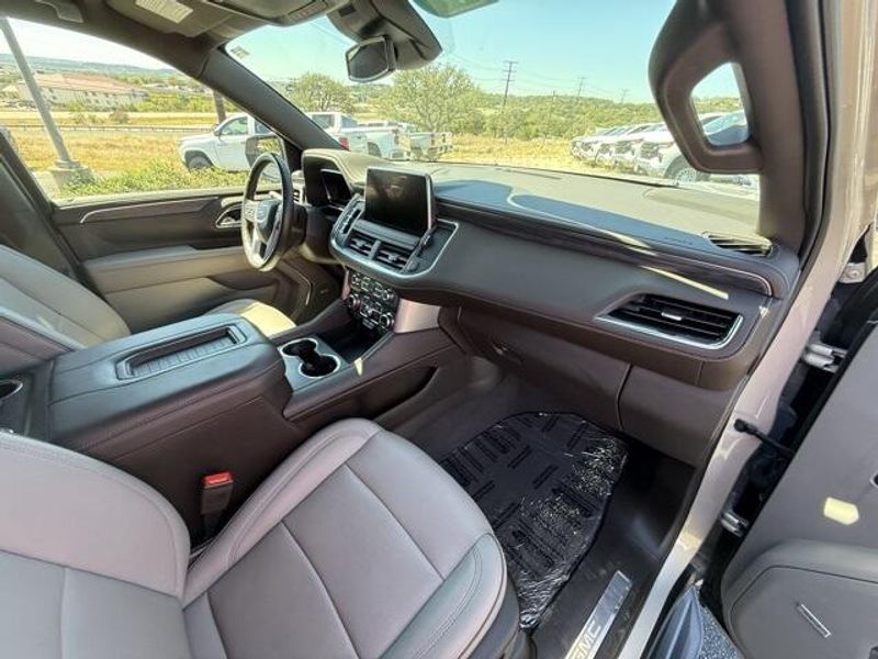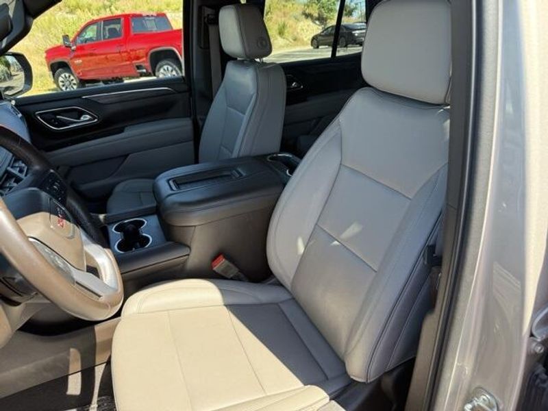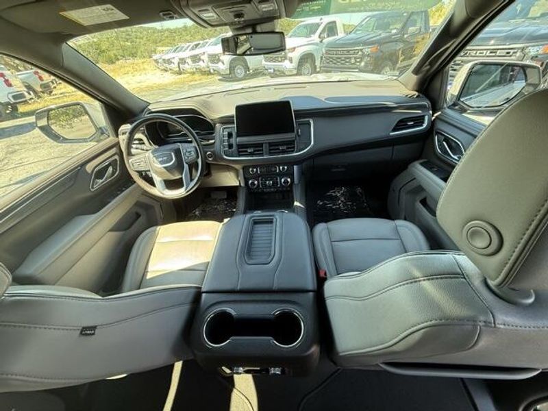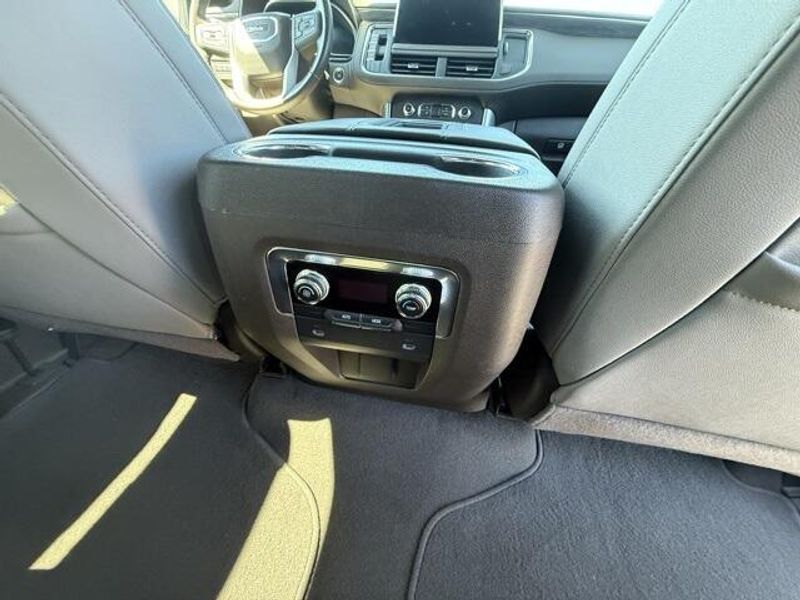 Pearl Beige Metallic 2023 GMC Yukon SLT 4WD 10-Speed Automatic with Overdrive EcoTec3 5.3L V8 1 OWNER, 4x4, Leather, 3rd Row Seating, 4WD, 2 Presets For Power Driver Seat, AM/FM radio: SiriusXM with 360L, Bose 9-Speaker Stereo Audio System Feature, Bright Chrome Bodyside Moldings, Bright Front & Rear Door Sill Plates, Chrome Door Handles w/Body-Color Strip, Hands-Free Power Programmable Rear Liftgate, Heated & Ventilated Driver & Front Passenger Seats, Heated Driver & Front Passenger Seats, Inside Rear-View Auto-Dimming Mirror, Navigation System, Power driver seat, Power steering, Preferred Equipment Group 4SA, Safety Alert Seat, Universal Home Remote, Wireless Charging.
