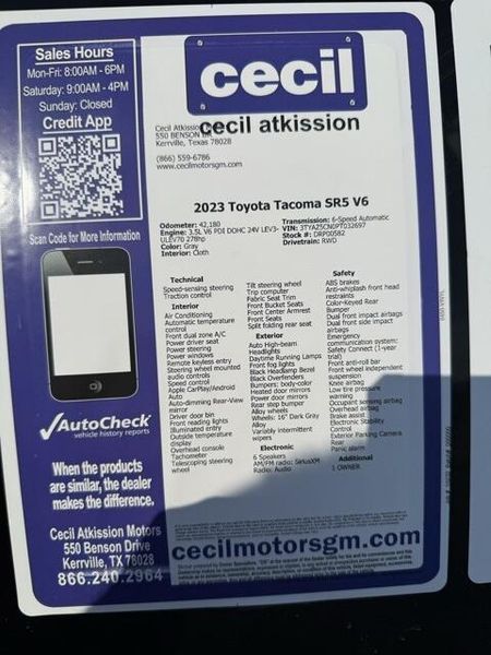 Gray 2023 Toyota Tacoma SR5 V6 RWD 6-Speed Automatic 3.5L V6 PDI DOHC 24V LEV3-ULEV70 278hp