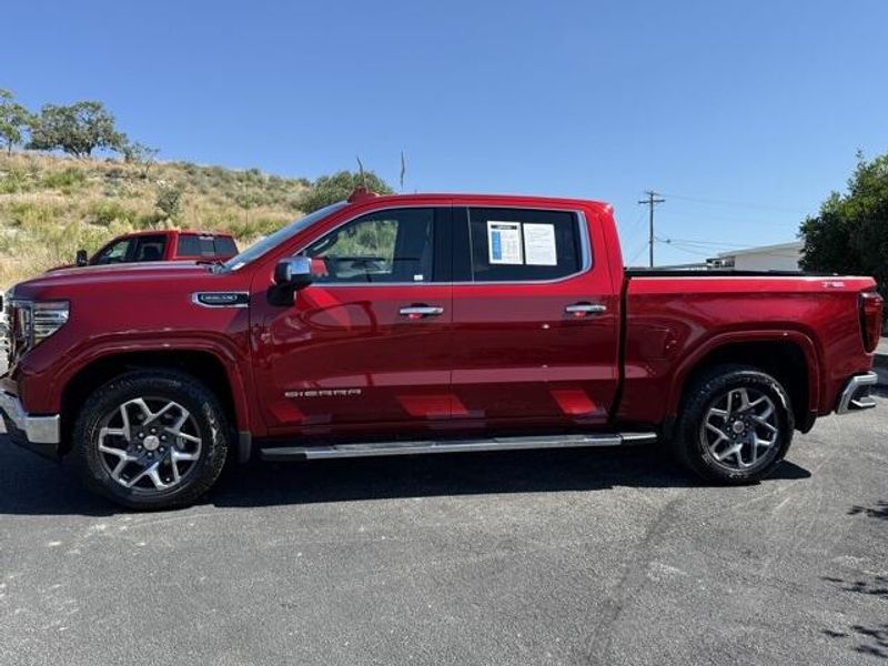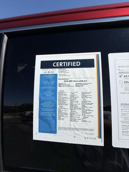 Volcanic Red Tintcoat 2025 GMC Sierra 1500 SLT 4WD 10-Speed Automatic EcoTec3 5.3L V8 1 OWNER, 4x4, Low Miles, Certified Preowned, 10-Speed Automatic, 4WD, Dark Walnut/Slate Leather, 120-Volt Bed Mounted Power Outlet, 120-Volt Interior Power Outlet, 170 Amp Alternator, 2 Charge/Data USB Ports, 2 Charge/Data USB Ports Inside Center Console, 2 Type-C Charge-Only Rear USB Ports, 6-Speaker Audio System Feature, Adaptive Cruise Control, Auto-Locking Rear Differential, Auxiliary External Transmission Oil Cooler, Chrome Header & Chrome Grille Insert Bars, Color-Keyed Carpeting Floor Covering, Deep-Tinted Glass, Electric Rear-Window Defogger, Electronic Precision Shift, Floor-Mounted Center Console, Front Bucket Seats, Front Frame-Mounted Black Recovery Hooks, Front Rain-Sensing Wipers, HD Rear Vision Camera, HD Surround Vision, Heated 2nd Row Outboard Seats, High Capacity Suspension Package, Hitch Guidance, Hitch View, In-Vehicle Trailering System App, Integrated Trailer Brake Controller, Keyless Open & Start, LED Cargo Area Lighting, Manual Tilt-Wheel & Telescoping Steering Column, Navigation System, OnStar Services Capable, Perimeter Lighting, Power Door Locks, Power Front Passenger Windows w/Express Up/Down, Power Front Windows w/Driver Express Up/Down, Power Rake & Telescoping Steering Column, Power Rear Windows w/Express Down, Power Sliding Rear Window w/Rear Defogger, Preferred Equipment Group 4SA, Premium Bose 7-Speaker Sound System, ProGrade Trailering System, Push Button Start, Rear Cross Traffic Braking, Rear Pedestrian Detection, Rear Wheelhouse Liners, Remote Vehicle Starter System, Safety Alert Seat, Sierra Safety Plus Package, SiriusXM w/360L Trial Subscription, SLT Convenience Package, SLT Preferred Package, Steering Wheel Audio Controls, Theft Deterrent System (Unauthorized Entry), Trailer Camera Provisions, Trailer Side Blind Zone Alert, Trailering Package, Ultrasonic Front & Rear Park Assist, Universal Home Remote, Ventilated Driver & Front Passenger Seats, Wi-Fi Hotspot Capable, Wireless Charging.