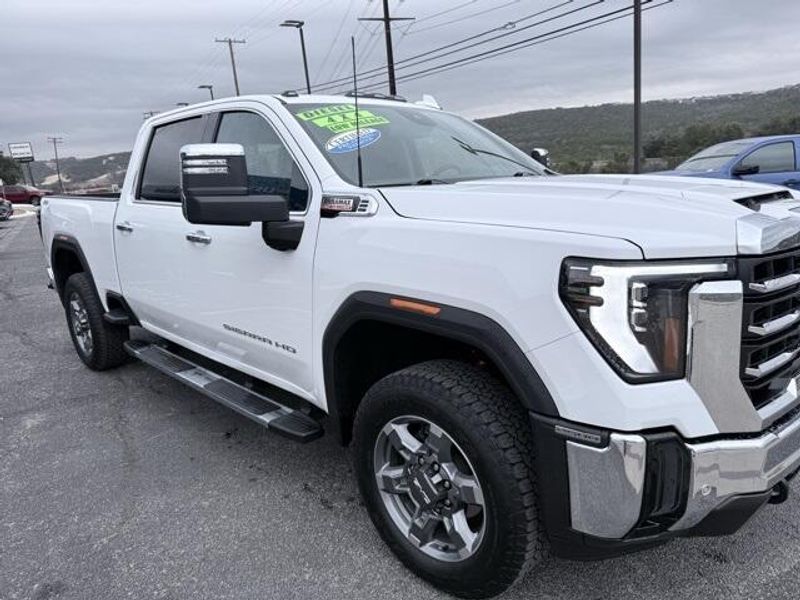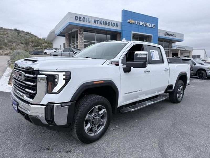 Summit White 2025 GMC Sierra 2500HD SLT 4WD 10-Speed Automatic Duramax 6.6L V8 Turbodiesel 1 OWNER, Low Miles, Diesel 4x4, Certified Preowned, 10-Speed Automatic, 4WD, Jet Black w/Forge Perforated Leather-Appointed Front Seat Trim, 120-Volt Bed Mounted Power Outlet, 120-Volt Instrument Panel Power Outlet, 2 Charge-Only Rear USB Ports, 2 Charge/Data USB Ports, 2 Charge/Data USB Ports Inside Center Console, 2-Speed Active Transfer Case, 3.42 Axle Ratio, 6-Speaker Audio System Feature, 6'' Rectangular Chromed Tubular Assist Steps, Adaptive Cruise Control, All-Weather Floor Liners (LPO), Bed View Camera w/2 Trailer Camera Provisions, Bose Premium 7-Speaker Sound System, Chrome Surround Grille w/Chrome Insert Bars, Deep-Tinted Glass, Electric Rear-Window Defogger, Floor-Mounted Center Console, Front Bucket Seats, Front Rain-Sensing Wipers, Gooseneck/5th Wheel Prep Package, HD Rear Vision Camera Delete, HD Surround Vision, Heated 2nd Row Outboard Seats, Heated Driver & Front Outboard Passenger Seats, Hill Descent Control, Keyless Open & Start, LED Cargo Area Lighting, LED Smoked Amber Roof Marker Lamps, Manual Tilt-Wheel/Telescoping Steering Column, Navigation System, Off-Road Suspension, OnStar Services Capable, Power Front Passenger Windows w/Express Up/Down, Power Sliding Rear Window w/Defogger, Preferred Equipment Group 4SA, Push Button Start, Rear Cross Traffic Alert, Rear Wheelhouse Liners, Remote Vehicle Starter System, Safety Alert Seat, Sierra HD Pro Safety Plus Package, SiriusXM w/360L Trial Subscription, SLT Convenience Package, SLT Preferred Package, SLT Premium Package, Spray-On Pickup Bedliner w/GMC Logo, Steering Wheel Audio Controls, Suspension Package, Trailer Cam Provisions & Trailer Viewing Software, Trailer Side Blind Zone Alert, Ultrasonic Front & Rear Park Assist, Unauthorized Entry Theft-Deterrent System, Universal Home Remote, Ventilated Driver & Front Passenger Seats, Wheels: 20'' Bright Face w/Dark Painted Pockets, Wireless Charging, Wireless Phone Projection, X31 Off-Road & Protection Package, X31 Off-Road Package.