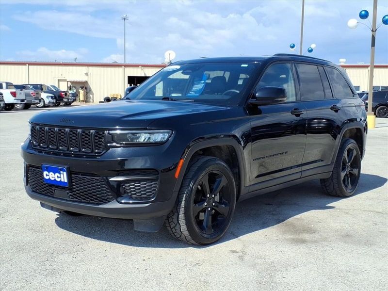 This 2023 Jeep Grand Cherokee Altitude is offered to you for sale by Cecil Atkission Ford Lincoln. Why own a car when you can own a lifestyle? We at Cecil Atkission Ford Lincoln offer you nothing less than the best with our Certified Pre-Owned vehicles. This vehicle meets Jeep's highest level of standards, allowing us to provide you with what you deserve. Why does this vehicle look so great? The CARFAX report shows it's only been owned by one owner. Tired of replacing tires? You're in luck. This vehicle just had them replaced for you. This SUV gives you versatility, style and comfort all in one vehicle. Outstanding craftsmanship and artisanal refinements abound with this Jeep Grand Cherokee Altitude. This is one of those rare vehicles that comes along for just a brief moment. Marked by excellent quality and features with unmistakable refined leather interior that added value and class to the Jeep Grand Cherokee Altitude. When this vehicle was shipped from the factory, Jeep decided that no option should be left off of this magnificent automobile. So, if you're in the market for a Jeep Grand Cherokee Altitude that is equipped with copious amounts of options, then we may just have the perfect vehicle to suit your needs. Rare is the vehicle that has been driven so gently and maintained so meticulously as this pre-owned beauty. This vehicle includes important services and maintenance records, so you can feel more confident about your buying decision. This Jeep Grand Cherokee Altitude has a showroom quality finish with no dents or scratches visible. This vehicle comes equipped with custom wheels. This Jeep includes: DIAMOND BLACK CRYSTAL PEARLCOAT GLOBAL BLACK, CAPRI LEATHERETTE/SUEDE SEATS Premium Synthetic Seats Bucket Seats *Note - For third party subscriptions or services, please contact the dealer for more information.*